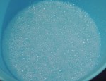 – Pour warm (not hot) water inside a small bucket and stir a bit of the detergent until creating bubbles. Don’t expect any extravagant bubbles, though.