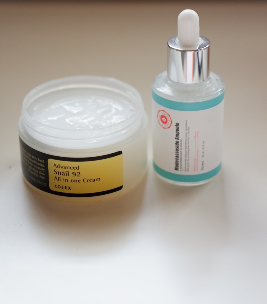 Then I’ll top it off with COSRX ADVANCED SNAIL 92 ALL IN ONE CREAM. Made from 92% of Snail Secretion Filtrate, it will help to repair and sooth red skin.